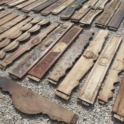 Impressionnant lot de 50 frontons et traverses d’armoire, bonnetières, du XVIII° et XIX° siècle, Régence, Louis XV, Louis XVI, Empire…,