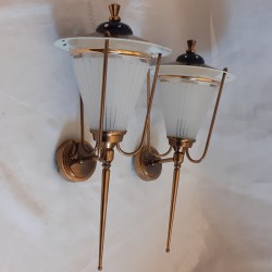 Paire de grandes appliques décoratives vintages des années 1950, 1960, très stylisées, dans l’esprit des maisons Arlus ou Lunel,