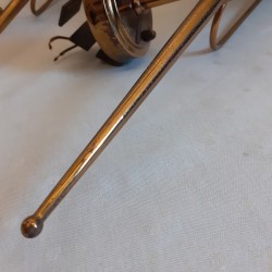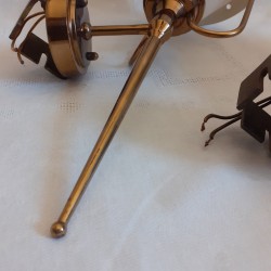 légères traces d’oxydation sur les parties dorées, une fente sur une bague et une sur le socle mural d’un côté, bien prises en photo, aucune incidence sur la solidité de l’ensemble, manques de peintures sur les tôles