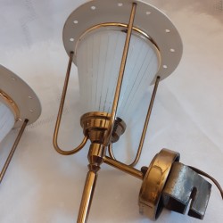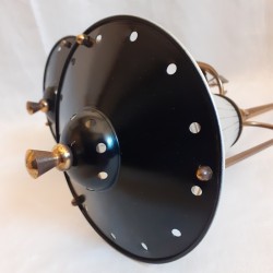 modèle très abouti, combinant métal doré, verre givré et tôle perforée peinte!