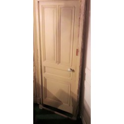 L'ensemble provient d'une maison bourgeoise de la région lyonnaise, pour information nous avons en stock d'autres portes de communication similaires, même moulures, avec leur imposte vitré et leur chambranle, une porte similaire plus large et dont les panneaux du haut sont en verres translucides (voir nos autres produits), ainsi que deux portes similaires avec leur chambranle, même moulures et sans imposte.