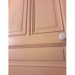 Le montage de menuiserie est classique avec panneaux à plates bandes, tenons mortaises et chevilles. Fines et élégantes moulures dans le bâti de la porte, repris sur les cadres,