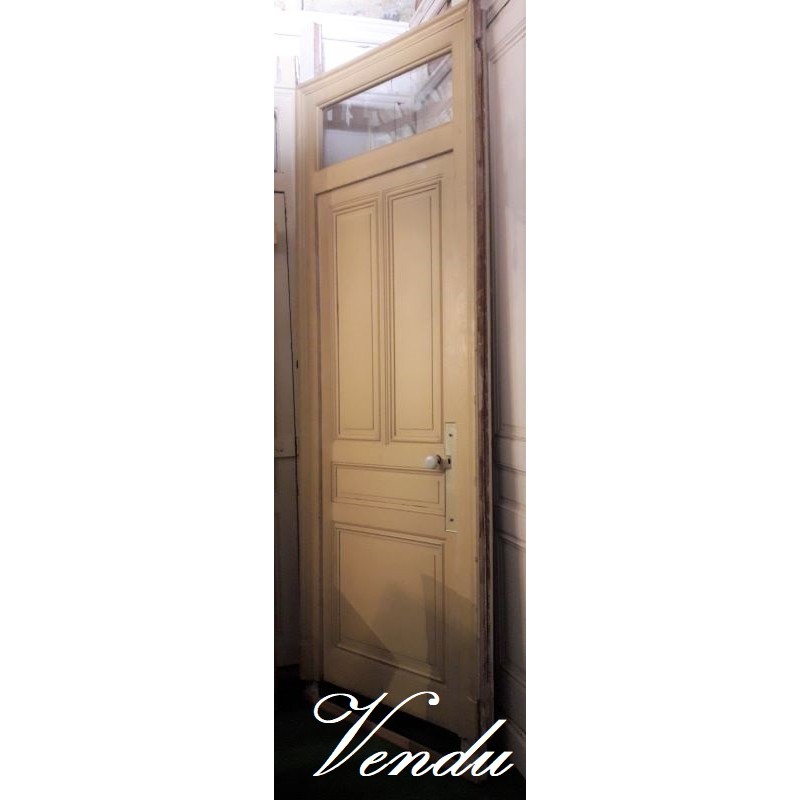 Porte ancienne 82,5x219cm avec son imposte en verre ancien et son châssis 101,5x299cm