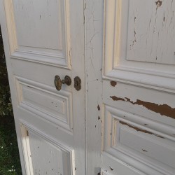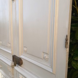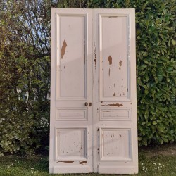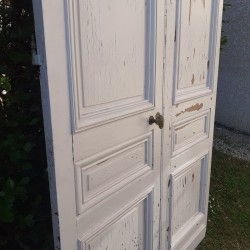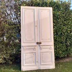 Dimensions: La double porte mesure 268cm de haut, 140cm de large, 3,4cm d’épaisseur hors moulures, et environ 10cm en tout.