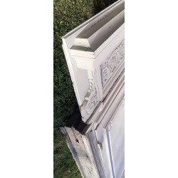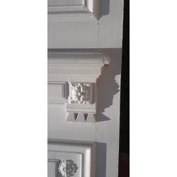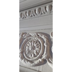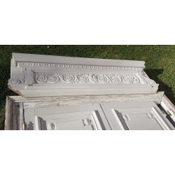 Leur couronnement remarquable de 171cm de large au panneau et 175cm au plus large (en bas), affiné par ses écoinçons en plâtre à enroulements est agrémenté d’une belle frise d’arabesques, entrelacs, de rinceaux de feuilles d’acanthe et de fleurs, et sous la corniche d’un ornement à décor de denticules et d’oves.