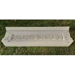 Le fronton mesure 175cm de long au maximum, 57cm de haut et 11,5cm d’épais. Le cadre proposé a des sections de 14x14cm.