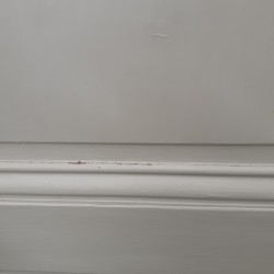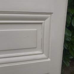 L’ensemble de la menuiserie en bois blanc, peint, est en très bel état, seuls sont à noter quelques défauts dus à son ancienneté et son usage, accrocs, éclats de peinture, et endroits où la peinture s'écaille, quelques taches sur les panneaux peints ont résisté à un léger nettoyage, ils présentent quelques légers défauts pris en photo.