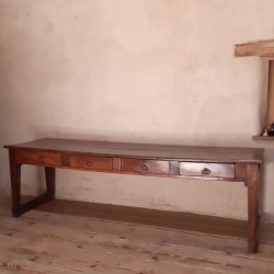Authentique grande table de communauté ancienne, fin XVIII°, début XIX°en noyer, présentant 4 tiroirs en façade.