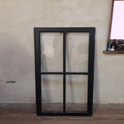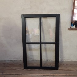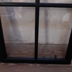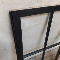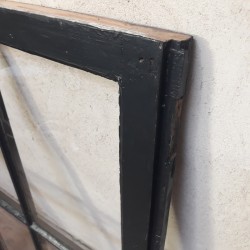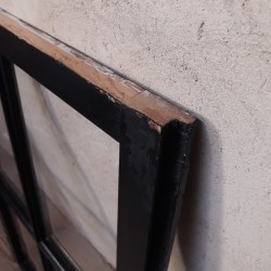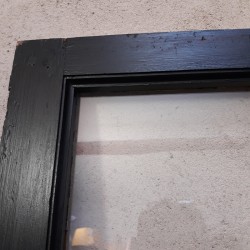baguettes moulurées d’un côté (mastic au verso), feuillures sur les deux faces, traces des deux entailles d’anciennes charnières, peinte en noir.