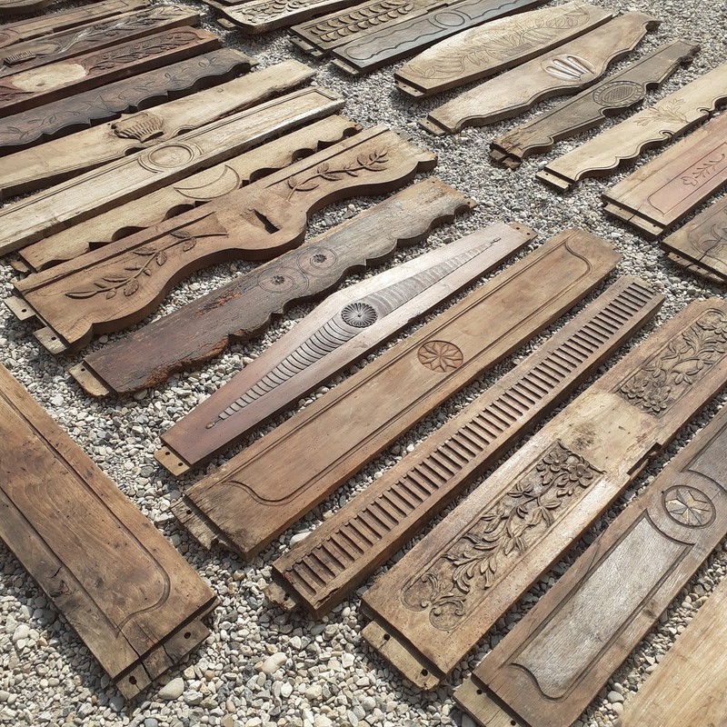 Impressionnant lot de 50 frontons et traverses d’armoire, bonnetières, du XVIII° et XIX° siècle, Régence, Louis XV, Louis XVI, Empire…,