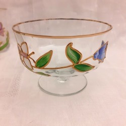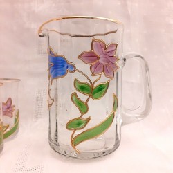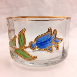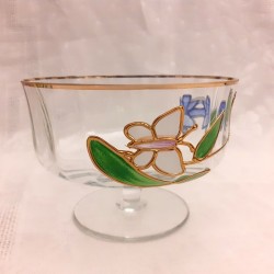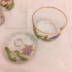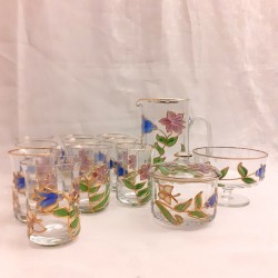 Superbe ensemble de 10 verres, un pot à eau (carafe), une bonbonnière et une coupe de la marque Tiffany entièrement réalisés à la main, travail artisanal, (Reine Handarbeit) NAGEL provenant d’Allemagne, soufflé et peint à la main, travail artisanal de la fin du XX° siècle, dans un état impressionnant, comme neuf, chacun des éléments est à facettes,
