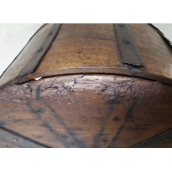 Constitué de bois de hêtre courbés, d’un fond en sapin et de ses 14 lanières de métal en fer forgé partant sous la ceinture de fer forgé supérieure et se rejoignant sous la base, 2 parties finales en forme de flèche sur les 8 sont manquantes, et de ses 2 magnifiques poignées.