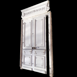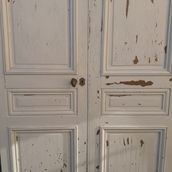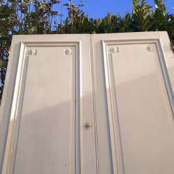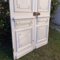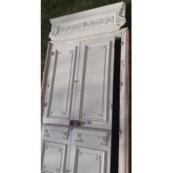 Dimensions: La double porte mesure 268cm de haut, 140cm de large, 3,4cm d’épaisseur hors moulures, et environ 10cm en tout.