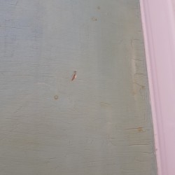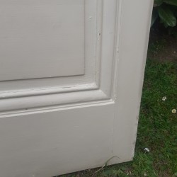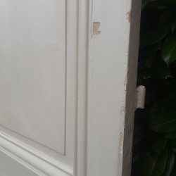 L’ensemble de la menuiserie en bois blanc, peint, est en très bel état, seuls sont à noter quelques défauts dus à son ancienneté et son usage, accrocs, éclats de peinture, et endroits où la peinture s'écaille, quelques taches sur les panneaux peints ont résisté à un léger nettoyage, ils présentent quelques légers défauts pris en photo.