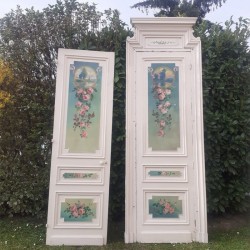 Nous avons à ce jour une boiserie « fausse » porte à 3 panneaux peints, identique, avec son superbe encadrement, visible sur la dernière photo et une double porte avec son fronton, de même provenance.