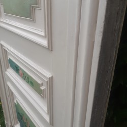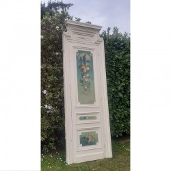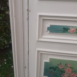 Le panneau monté à grand cadre présente des moulures saillantes et ses 3 magnifiques panneaux peints d’origine.