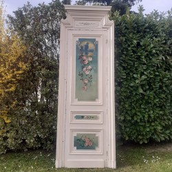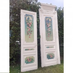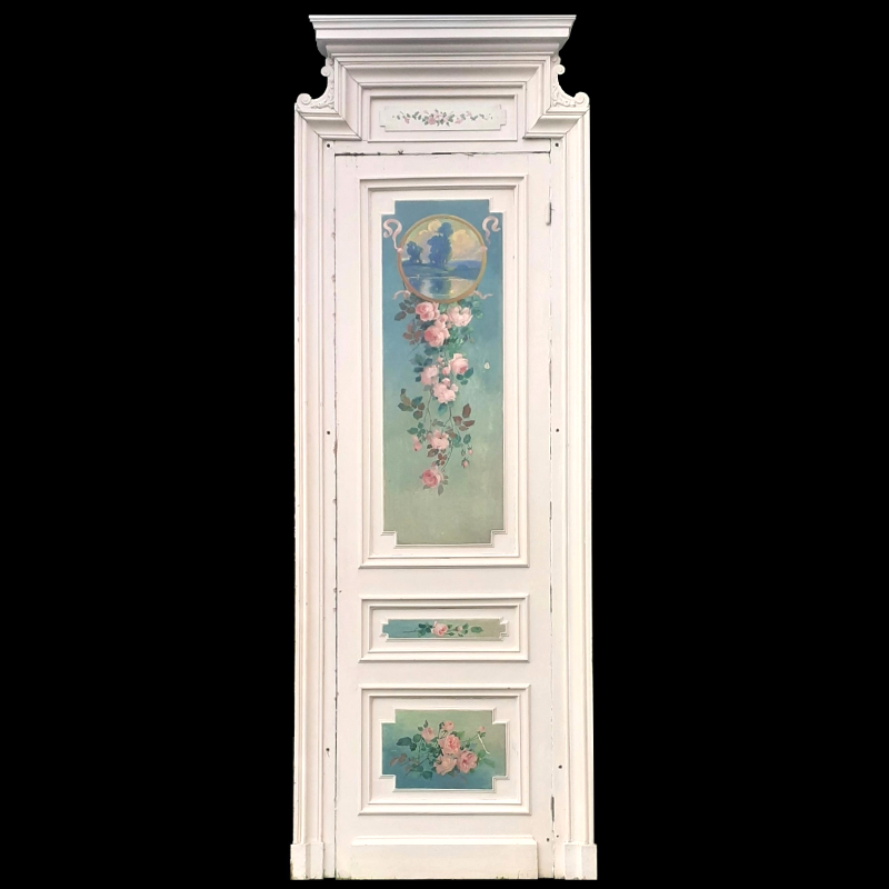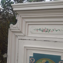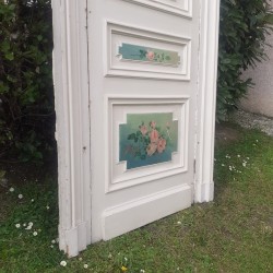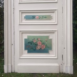 Nous avons à ce jour une porte à 3 panneaux peints, identique, (sans son encadrement, visible sur la dernière photo) et une double porte avec son fronton, de même provenance,