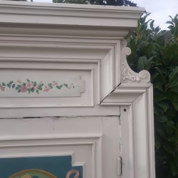 Impressionnante, massive, mais également très élégante et raffinée avec ses peintures à l’huile, rare avec son fronton d’origine!