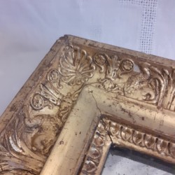 Authentique miroir en bois et stuc doré, de la première moitié du XIX° siècle, avec sa dorure d’origine.