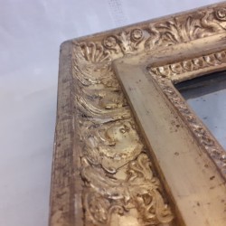 Beau miroir rectangulaire, très décoratif malgré ses marques du temps, avec son riche et rare décor.